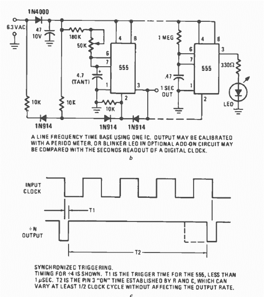 Este circuito sincronizado por la red eléctrica simplemente produce 1 pulso por segundo. El circuito es de una revista Radio Electronics de mayo de 1977.