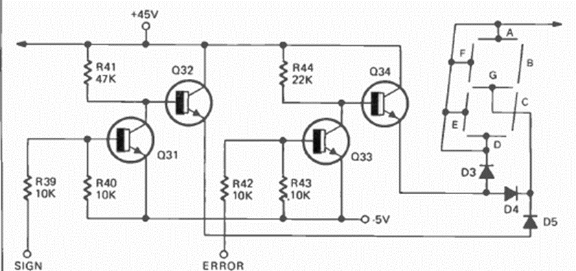 Esta configuración para circuitos lógicos que realizan operaciones con números negativos se encontró en la revista Radio Electronics de agosto de 1973. El circuito utiliza transistores comunes y se implementó en una calculadora en ese momento.