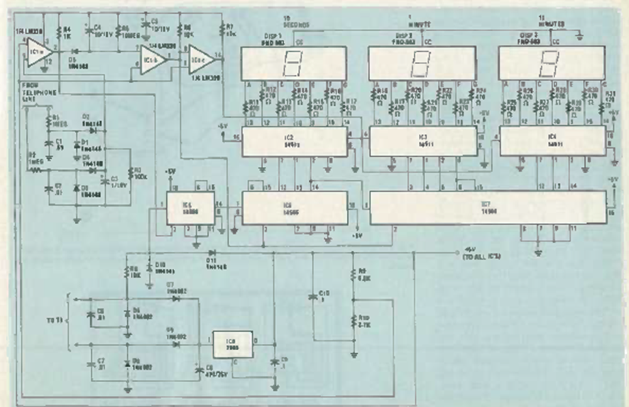 Este circuito de 3 dígitos es de una revista de Radio Electronics de noviembre de 1984. Los componentes siguen siendo comunes hoy en día, lo que permite un fácil montaje.