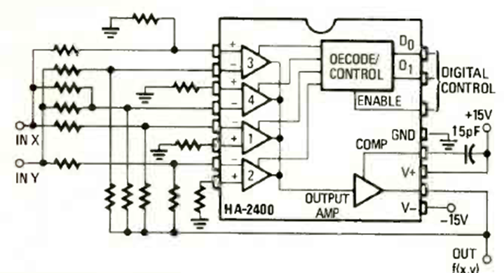Encontramos este circuito en la revista Radio Electronics de marzo de 1980. El circuito utilizado es el HA2400 lanzado en ese momento. La fuente de alimentación debe ser simétrica.