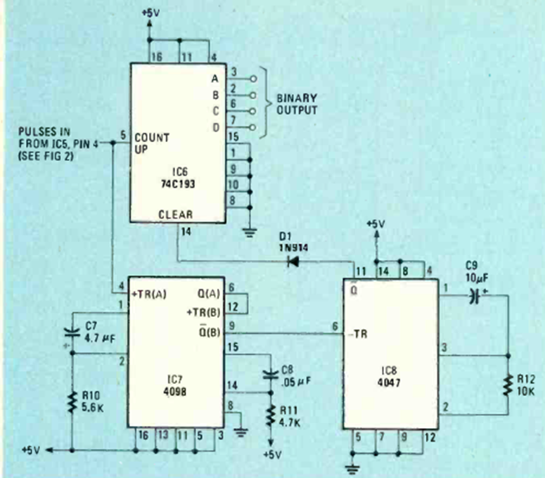 Trabajando con los circuitos anteriores, este circuito se reinicia después de 1 segundo. El circuito es de la revista Radio Electronics, agosto de 1984. La sincronización se puede cambiar.