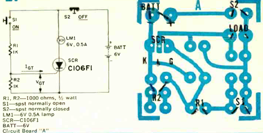 Este circuito, con placa de circuito impreso, proviene de un artículo de la revista Radio Electronics de mayo de 1971. El circuito utiliza C106, que ya era un componente común en ese momento.