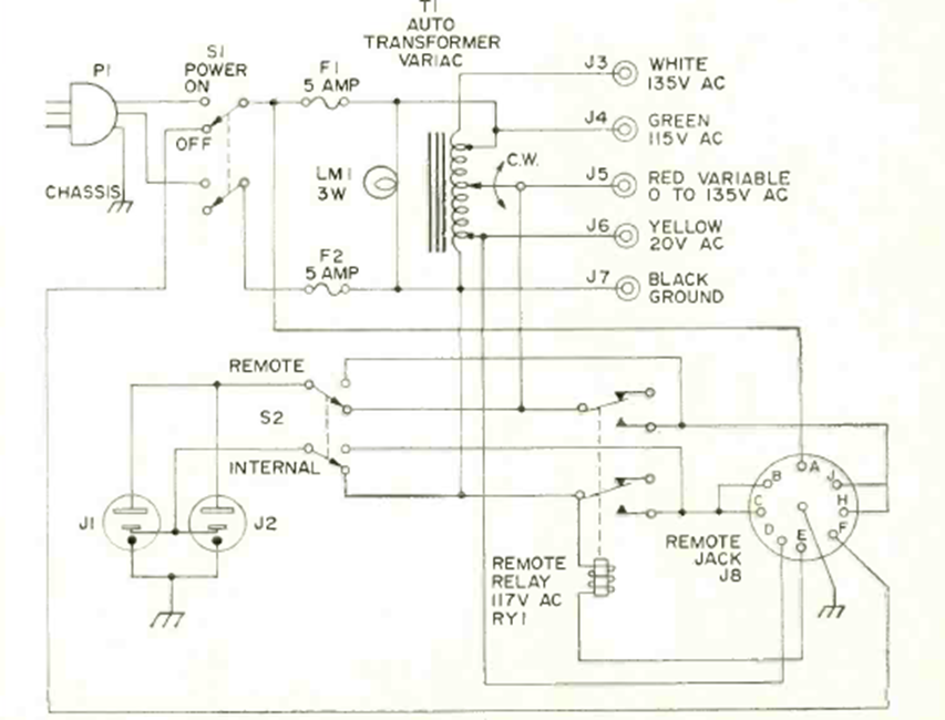 Esto representa un circuito autotransformador muy útil en el banco. Lo encontramos en la revista Radio Electrónica de septiembre de 1970. El transformador debe ser acorde con lo que se quiere suministrar en la salida.