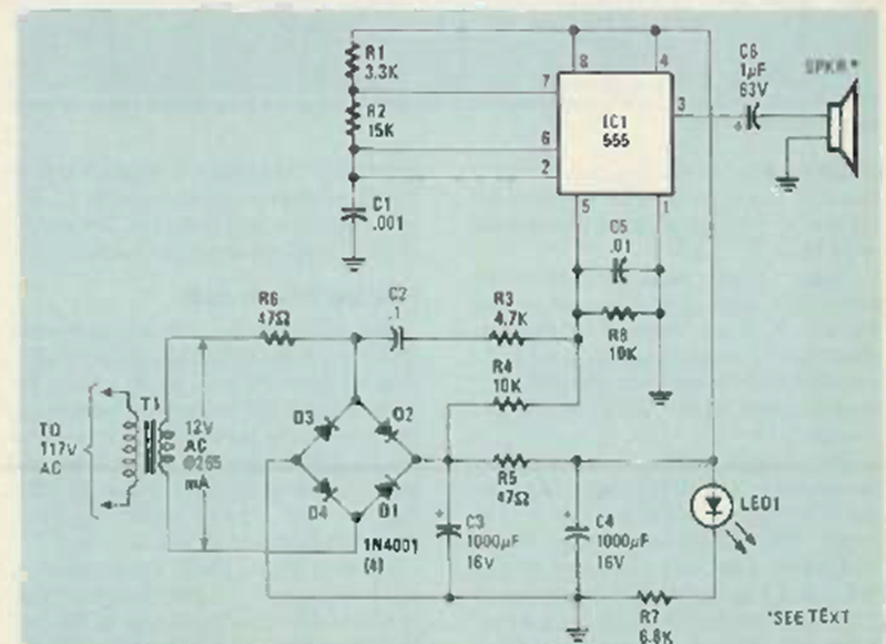 Este circuito incluye el suministro de energía desde la red eléctrica. Lo encontramos en Radio Electronics en julio de 1985. Todavía hoy se puede montar fácilmente.