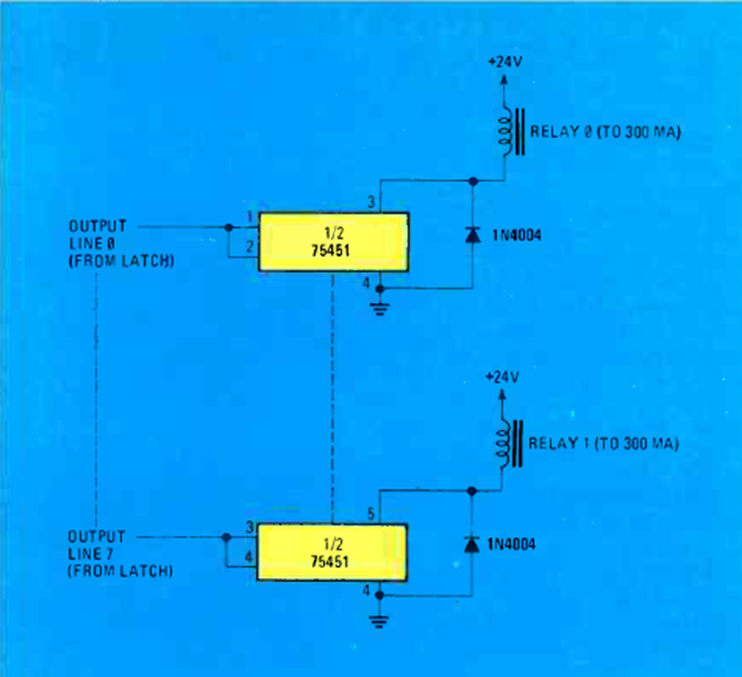 Este circuito de protección de relé para computadoras antiguas se encontró en la revista Radio Electronics de enero de 1983. Los relés son del tipo sensible con corrientes de hasta 200 mA.