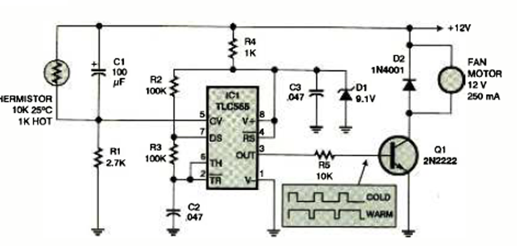Encontrado en la revista Electronics Now de febrero de 1997, este circuito controla motores según el transistor utilizado. Para el transistor indicado, la corriente máxima es de 200 mA.
