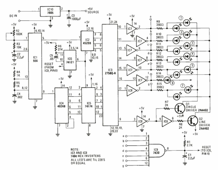El propósito es únicamente recreativo. Flashea los LED y aprende a hacer montajes digitales. El circuito es de Electronics Experimenter Special Projects de 1981. Casi una broma.