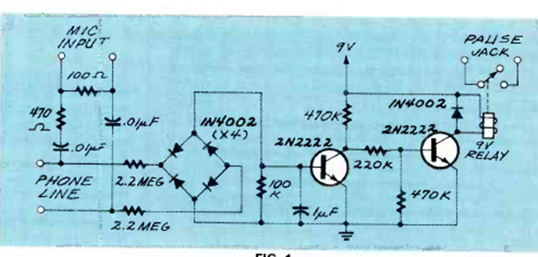 Este circuito fue encontrado en la revista Radio Electronics de octubre de 1989. Activa un relé auxiliar con la señal de llamada para un eventual sonido más fuerte del timbre.