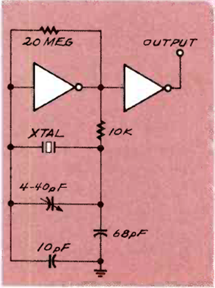 Este oscilador con el 4049 puede generar señales de hasta unos 14 MHz según el artículo de la revista Radio Electronics de diciembre de 1992. La alimentación puede ser entre 6 y 12 V normalmente.