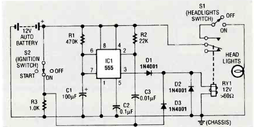 Este circuito se encontró en la edición de septiembre de 1992 de la revista Radio Electronics. El circuito no utiliza un transistor para controlar el relé y no requiere ajustes.