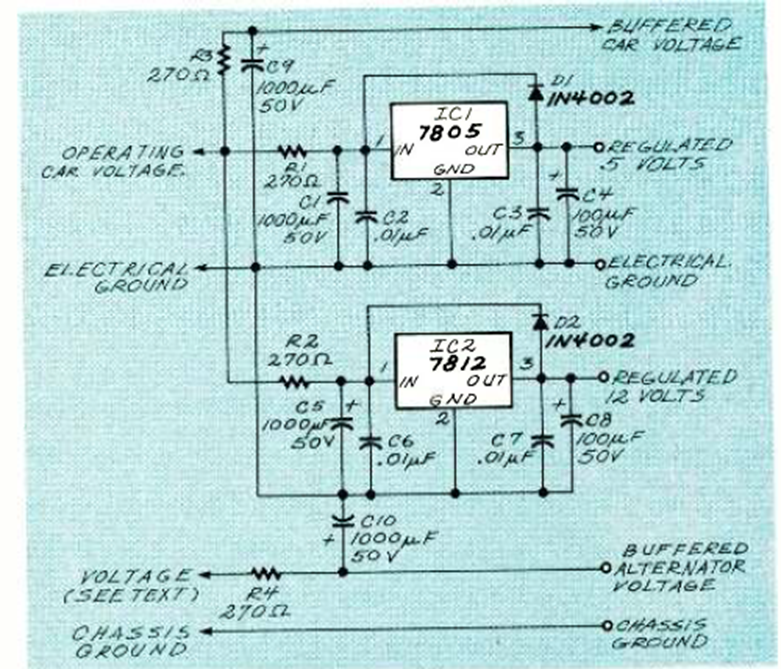 Este circuito se encontró en la edición de febrero de 1994 de la revista Electronics Now. Utiliza reguladores de 6 y 12 V que deben estar equipados con disipadores de calor. La corriente es 1A (máx.).