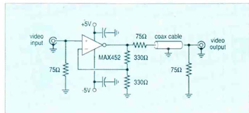 Este circuito es para señales de video de TV analógicas y se encontró en la edición de marzo de 1988 de la revista Radio Electronics. El circuito utiliza un circuito integrado Maxim que todavía se puede encontrar.
