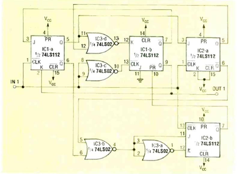 Este circuito TTL se encontró en la revista Radio Electronics de diciembre de 1990. El circuito tiene un ciclo de trabajo del 50%. Su alimentación debe ser de 5 V.