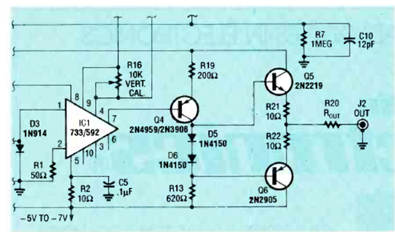 Encontramos este circuito en una revista Radio Electronics de junio de 1992. El circuito tiene una etapa de potencia y se utiliza con señales de TV de vídeo de 4,5 MHz.