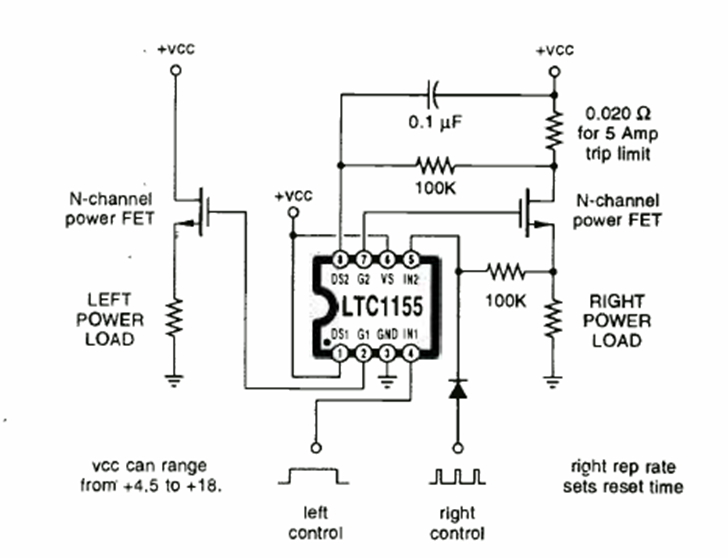 Este circuito excita cargas simétricas a través de un solo transistor. El circuito es de una Radio Electronics de enero de 1993. La potencia depende del MOSFET utilizado.