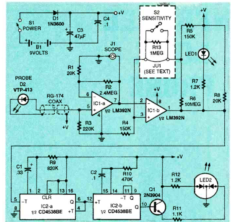 Este circuito fue descrito en un artículo de la revista Electronics Now en diciembre de 1995. El circuito utiliza circuitos integrados que aún son bien conocidos hoy en día.