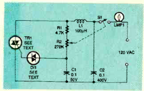 Este circuito es de Electronics Now de agosto de 1995. El triac depende de la carga que debe ser resistiva. El circuito indicado es para la red de 120 V (117 V).