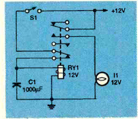 Este oscilador de relé de baja frecuencia se obtuvo de un artículo de la revista Electronics Now en junio de 1994. Funciona como un intermitente en esta aplicación.