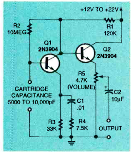 Encontramos este circuito en la edición de marzo de 1993 de la revista Electronis Now. El circuito utiliza transistores comunes y funciona con cápsulas cerámicas.