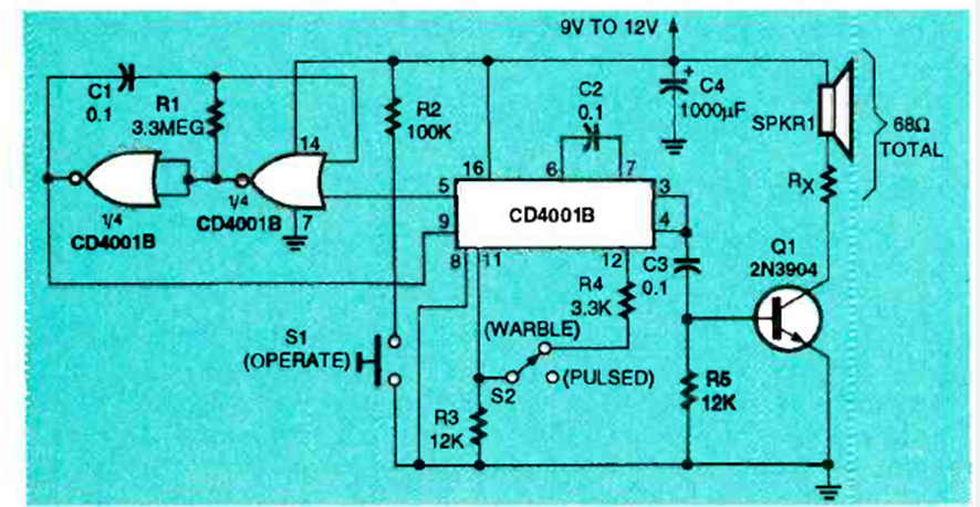 Este circuito fue encontrado en la edición de octubre de 1994 de la revista Electronics Now. El IC 40446 es un PLL que no es muy común hoy en día. El circuito tiene dos tipos de efectos.