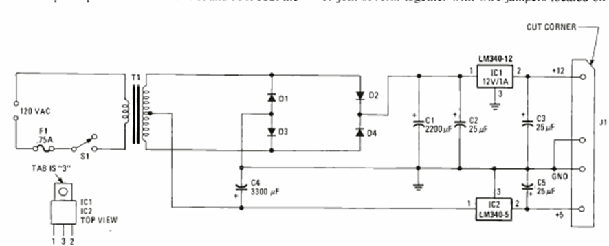 Esta fuente de alimentación para quienes quieran alimentar y recuperar disquetes de 5 ¼ fue encontrada en la edición especial de la revista Electronics Experimenter del año 1983.