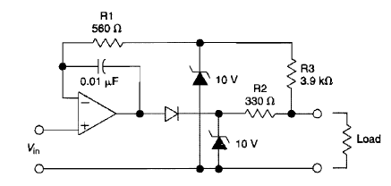 Encontramos este circuito de protección para amplificadores operacionales en la Enciclopedia de Circuitos Electrónicos, volumen 5, de 1995. El circuito protege contra corriente o tensión excesivas en el circuito de carga.