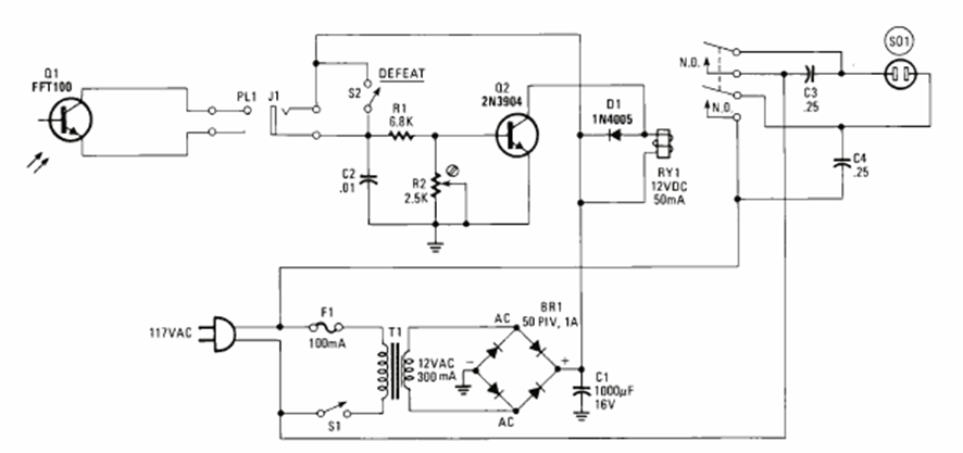 Este circuito enciende automáticamente el televisor cuando se enciende el VCR. Se puede adaptar para otros fines, ya que la versión es antigua, habiendo sido publicada en la edición de Electronics Experimenter Special Projects de 1981.