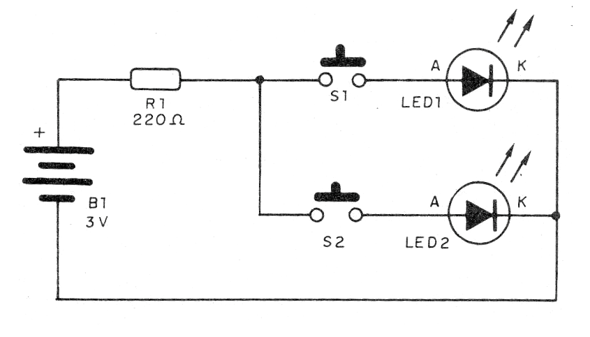 Es un simple indicador visual que se puede utilizar para enviar un mensaje en código, avisar si algo está disponible o no (verde, rojo). Basta con combinar previamente la codificación y luego usar el aparato. Se trata de un montaje muy simple, alimentado por pilas comunes que tendrán una excelente duración dado el bajo consumo. En la figura 1 tenemos el diagrama completo del aparato.