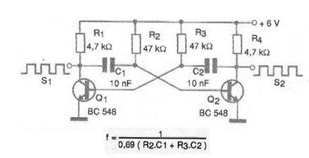 Una configuración tradicional de oscilador usada cuando se desea una señal rectangular es la que hace uso de dos transistores conectados como multivibrador astable.