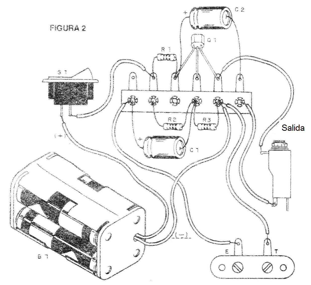 Podemos conectar fuentes de señal débiles como radios de cristal (galena), detectores de radios experimentales, micrófonos en las entradas E y T y obtener la señal en la salida para el auricular, con amplificaciones que van de 20 a 200 veces, según el transistor empleado y Los valores de R2 y R3.