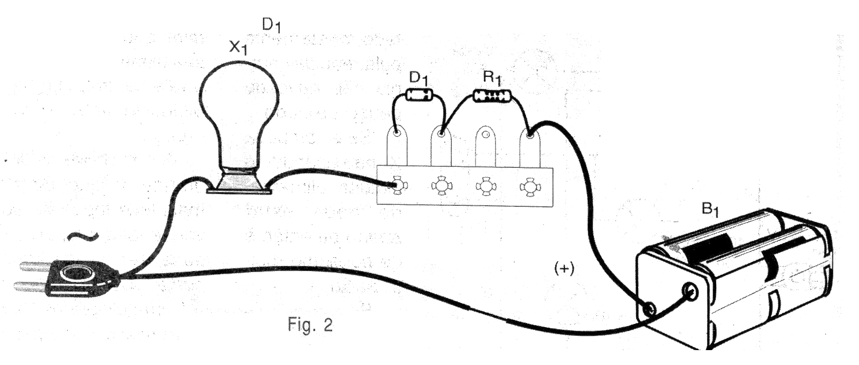 La polaridad en la conexión del diodo y del soporte de pilas es fundamental para el correcto funcionamiento del aparato.