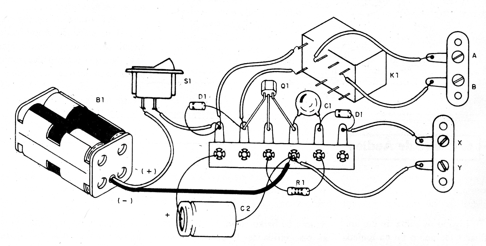 Entre A y B conectamos el circuito a ser controlado y entre X e Y aplicamos la señal de audio que va a controlar el circuito. Para usar, ajuste el volumen del equipo de audio hasta que el sonido deseado provoque el accionamiento del relé. El circuito necesita aproximadamente 1 V para su accionamiento.