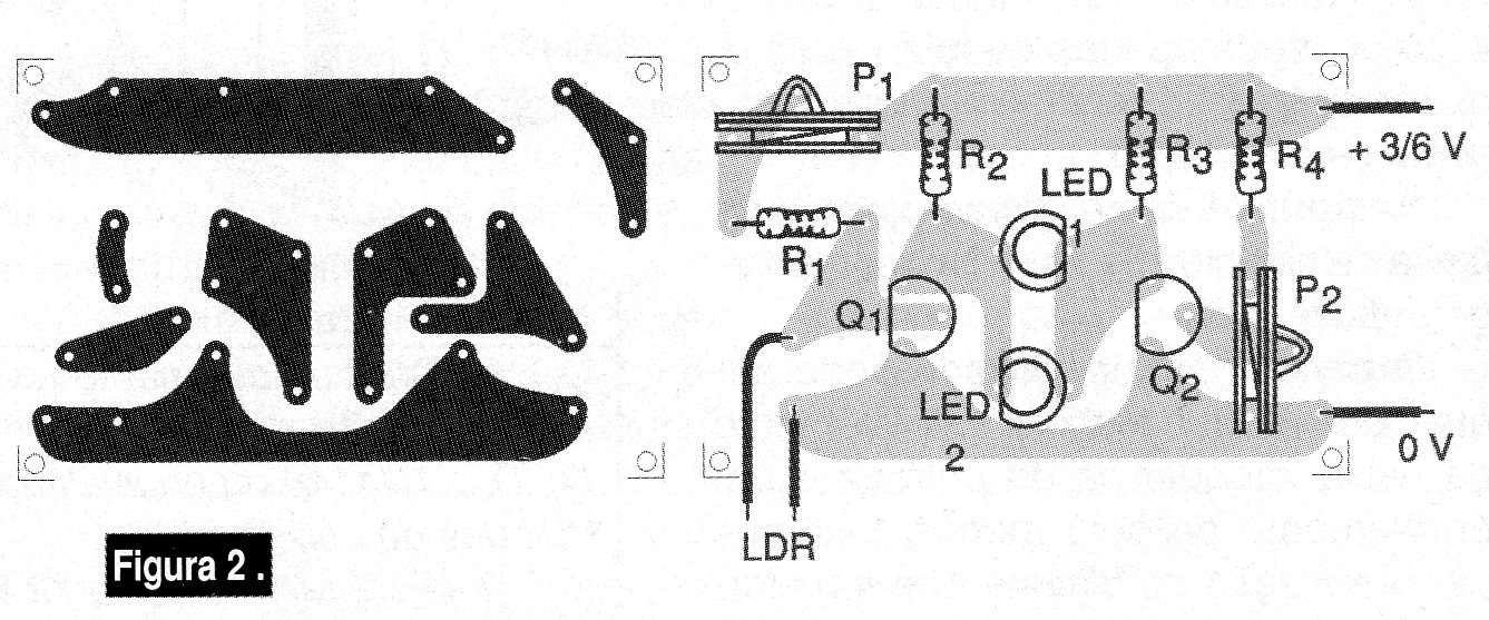 En la figura 2 tenemos una sugerencia de placa de circuito impreso para el montaje de este fotómetro.