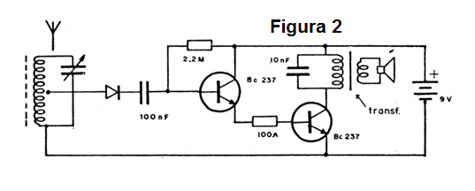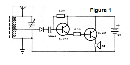 En la figura 1 mostramos el circuito de una radio simple de este tipo en que los transistores se acoplan de modo directo, es decir, la señal es retirada no de la manera convencional que es por el colector del primer transistor, sino de su emisor siendo entonces llevado directamente a la base del segundo transistor.