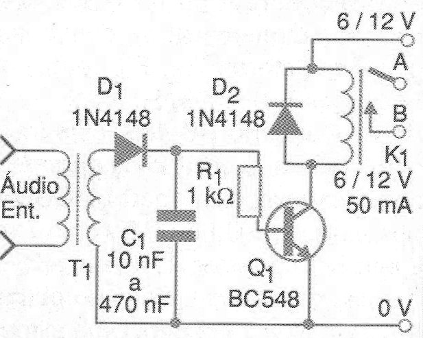 Para accionar un relé a partir de un tono de audio o señal de baja frecuencia presente en una línea de comunicaciones tenemos el circuito mostrado en la figura 1.