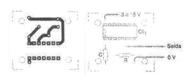 En la figura 2 tenemos una sugerencia de placa de circuito impreso para aprovechar sólo la primera puerta como oscilador. Las demás puertas pueden ser usadas en otras funciones o aún conectadas en paralelo como inversores para amplificación digital de la señal generada.
