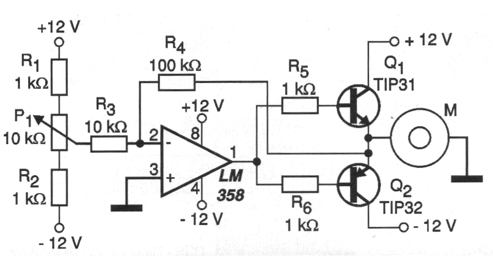 Los amplificadores operacionales equivalentes al LM358 pueden ser empleados y la ganancia del circuito que va a determinar su respuesta puede ser cambiada en R4, dependiendo de las características del motor utilizado.