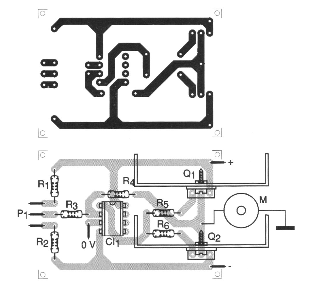 Los dos transistores deben montarse en radiadores de calor compatibles con la potencia del motor.
