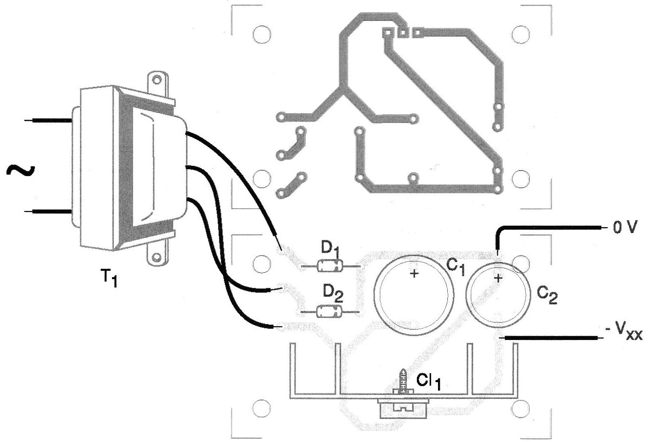 En la figura 1 tenemos el circuito completo de una fuente negativa de tensión, usando un CI de la serie 79xx.