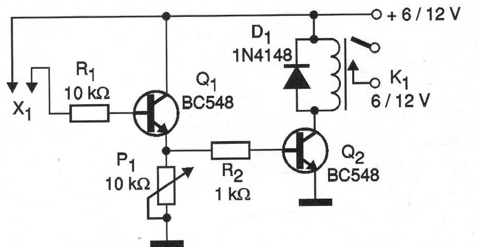 K1 - Relé de 6 o 12 V sensible (hasta 100 mA - contactos según el circuito controlado)