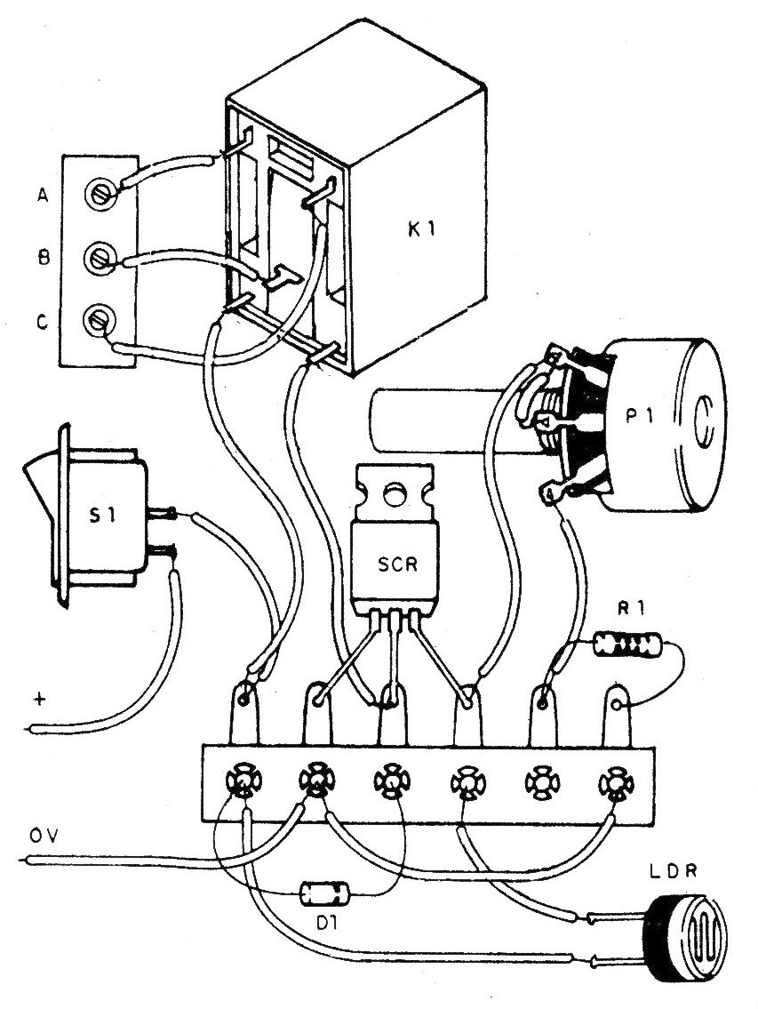 Para utilizar el aparato ajuste P1 hasta que, como LDR en la oscuridad ocurra el disparo del relé.