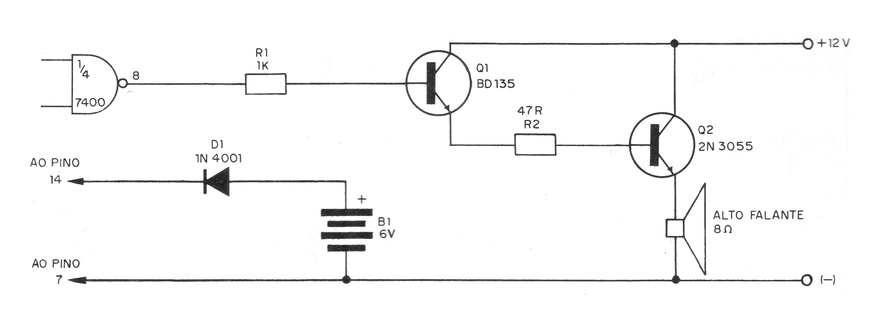 El proyecto que presentamos en este artículo es de una sirena intermitente que lleva sólo un circuito TTL del tipo 7400 (formado por 4 puertas NAND de dos entradas). Newton C. Braga