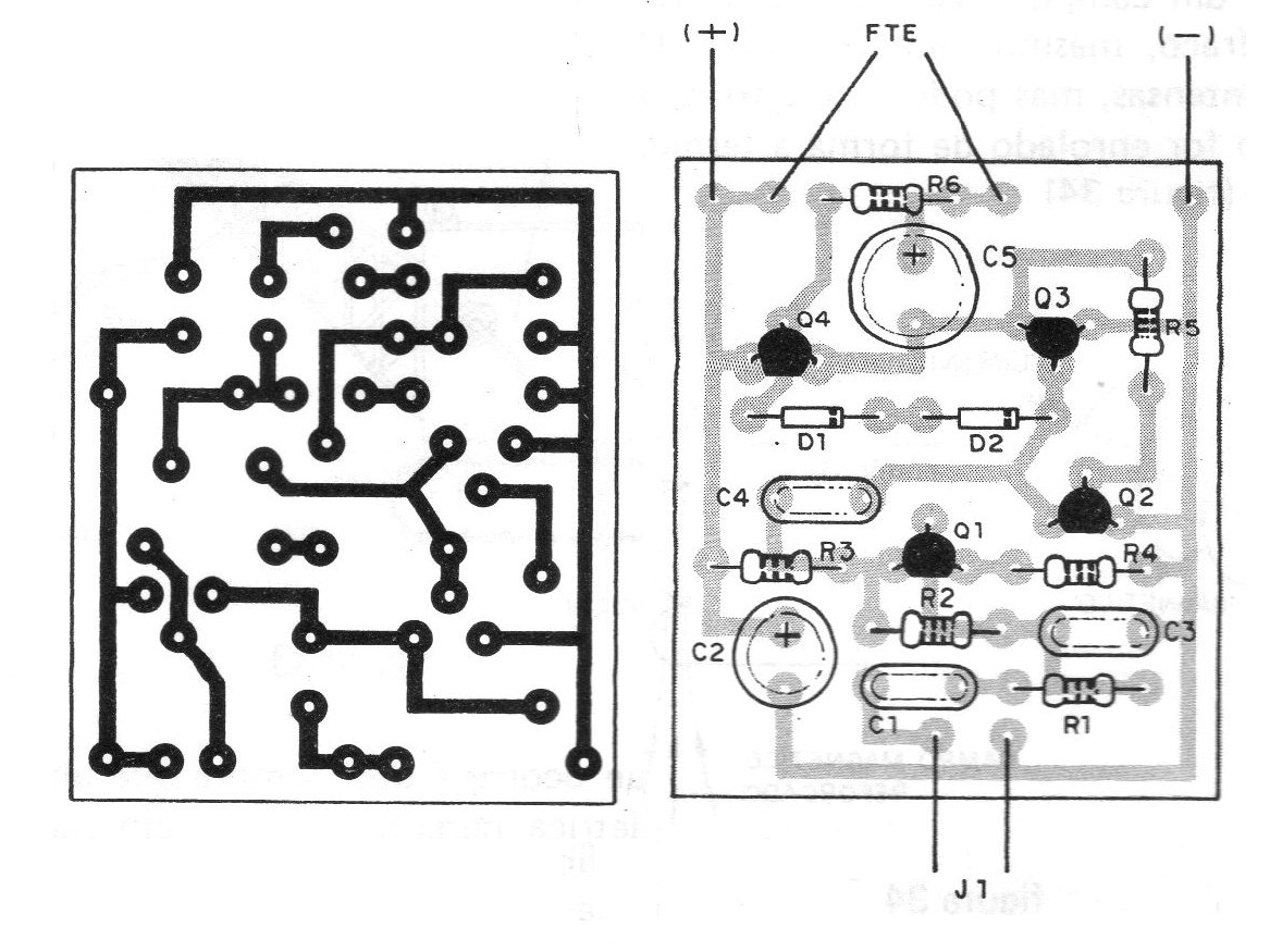Este amplificador también se puede montar en una pequeña placa de circuito impreso, que se muestra en la figura 3.