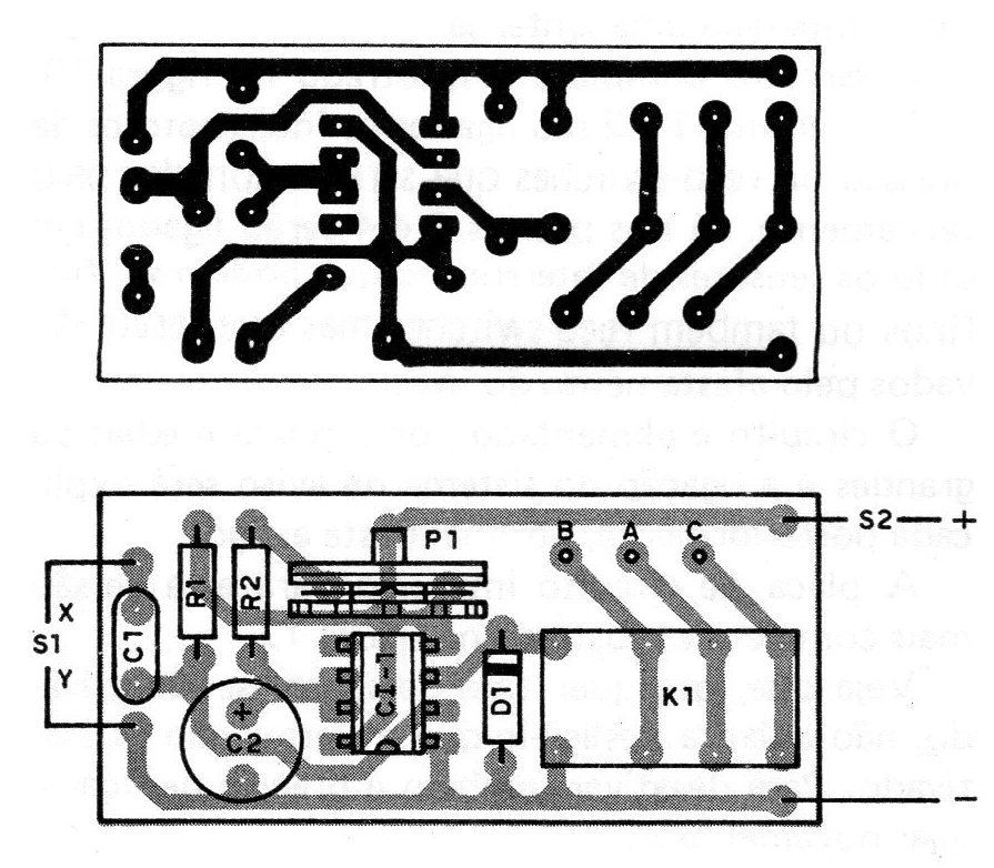 Tenemos aquí una interesante versión de alarma temporizada que puede utilizar los más diversos tipos de sensores. Una vez activado él mantiene disparado un circuito de alarma por un tiempo ajustado en P1. Este tiempo puede variar entre algunos segundos hasta cerca de 20 minutos dependiendo del valor de C2 que como máximo puede tener 470 uF y de P1 que como máximo puede tener 1 M.