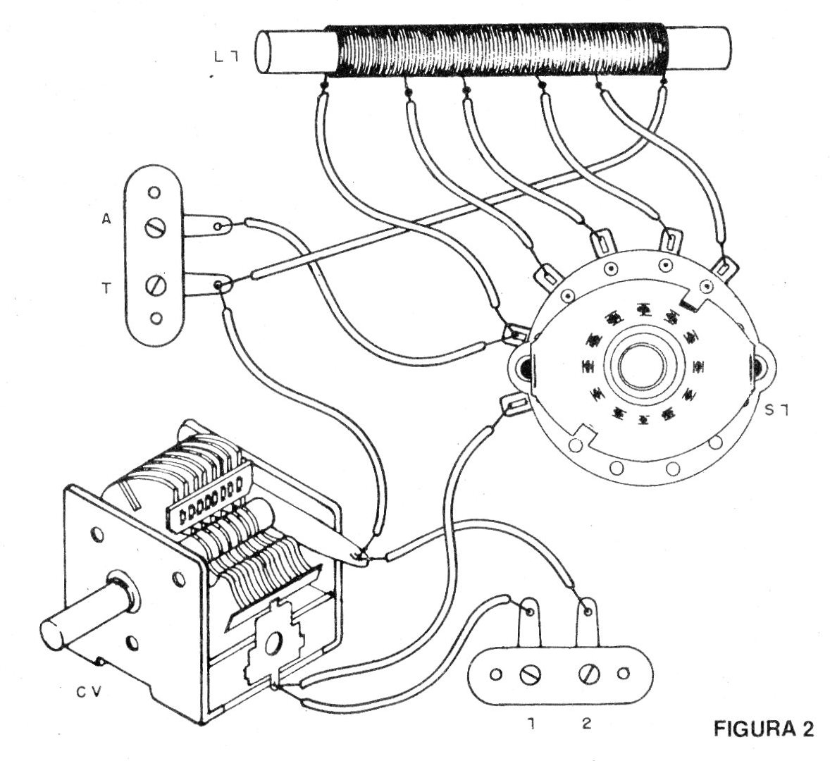 Para la banda de ondas medias, la bobina L1 consta de 100 espiras de hilo esmaltado 28 con tomas de 20 en 20 espiras, o si el lector tiene una llave de más posiciones, de 15 en 15 espiras o incluso de 10 en 10 espiras.