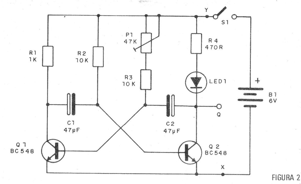 La prueba es inmediata. Después del montaje, basta con conectar la unidad. Dependiendo del ajuste de P1, el LED parpadeará más lento o más rápido. Para comprobar la salida basta conectar un multímetro en la escala de Voltios DC apropiada entre los puntos O y X.