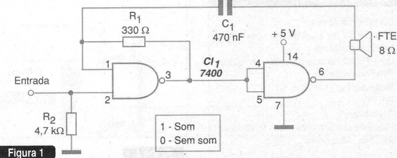 La frecuencia del tono producido por el circuito de la figura 1 depende de C1 que puede cambiar en el rango de 100 nF a 1 uF. Los valores menores de C1 resultarán en sonidos más agudos.