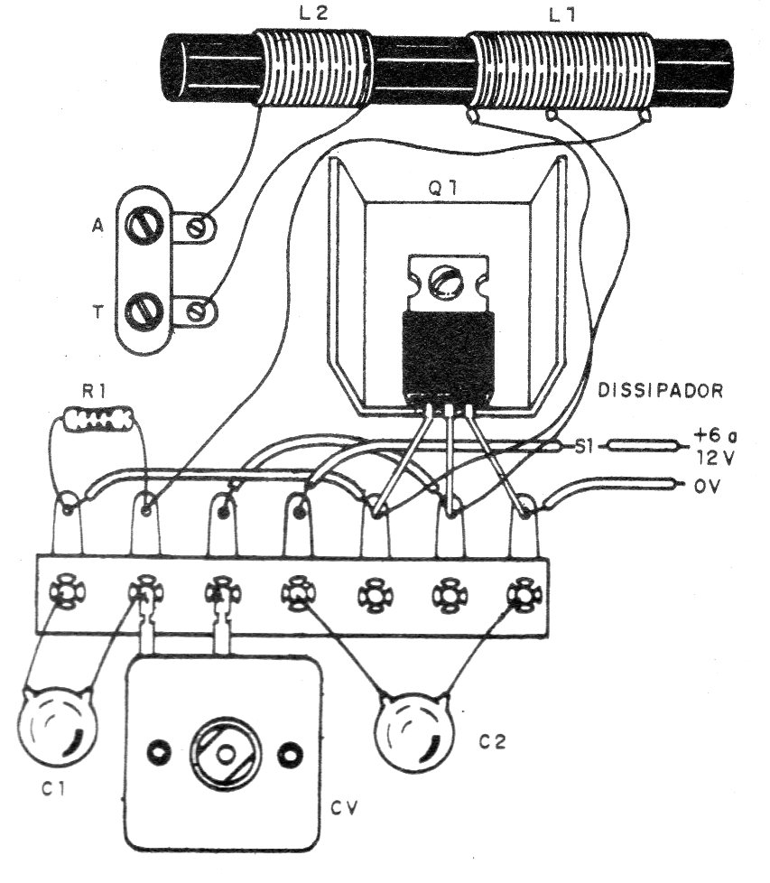 L2 consiste en 12 a 15 espiras del mismo hilo al lado de L1, como muestra la figura en la que damos el aspecto del montaje.