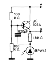 Este circuito utiliza un transistor que puede ser el BC549 y tiene excelente ganancia con foto diodos comunes. La alimentación puede ser de 5 a 12 V y es compatible con la lógica TTL lo que significa que puede funcionar como shield para microcontroladores.