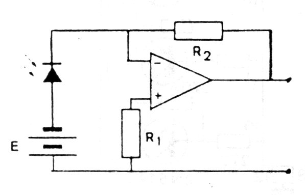 Esta es una configuración tradicional para el amplificador de fotodiodo que utiliza el amplificador operacional. La tensión de polarización inversa del fotodiodo puede ser de 3 a 12 V y los resistores determinan la ganancia. R2 de 1 M y R1 de 1 k son valores típicos.